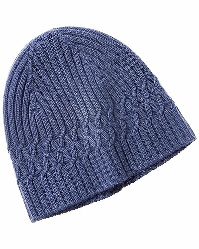 - Ribbed Cable Cashmere Beanie in denim